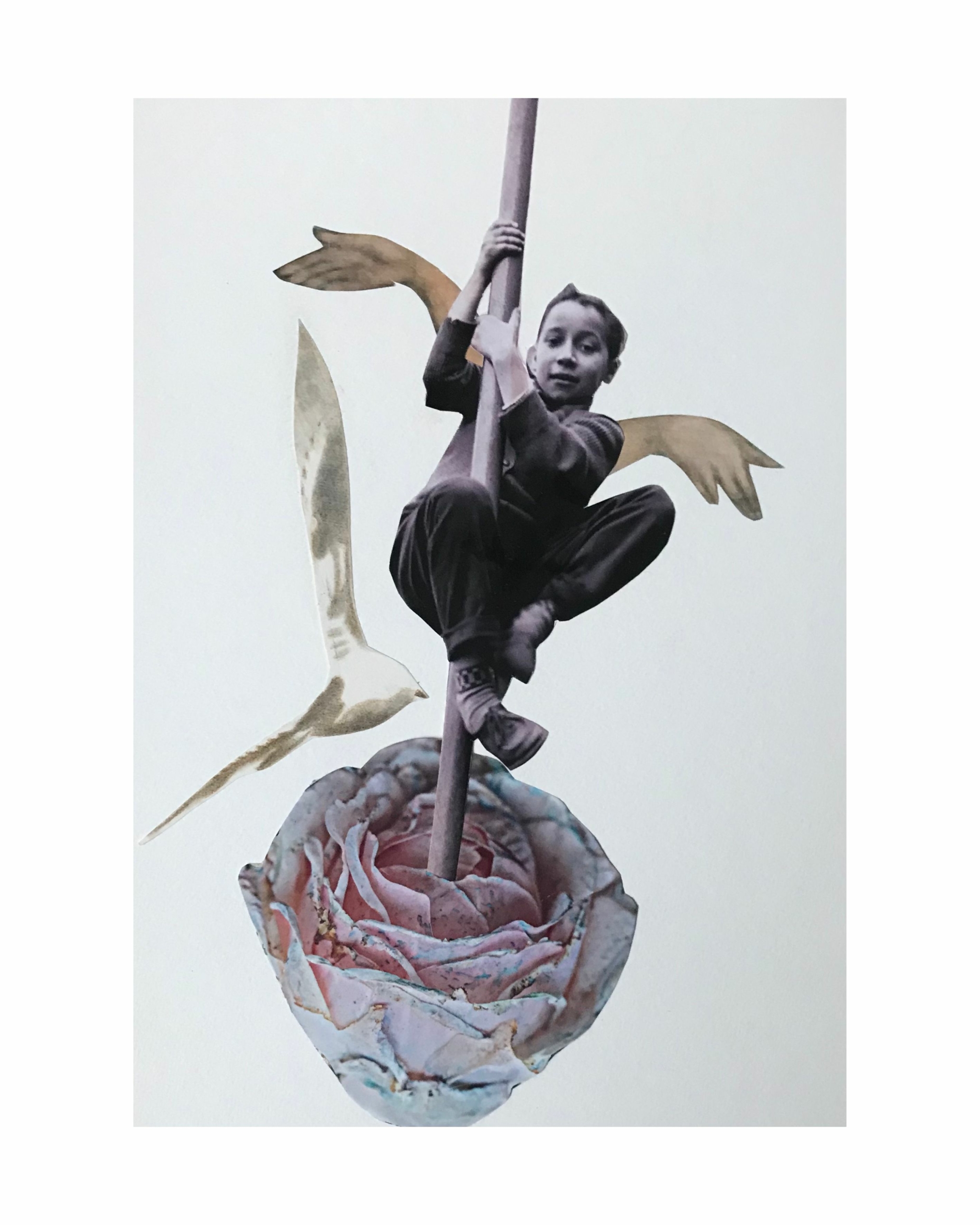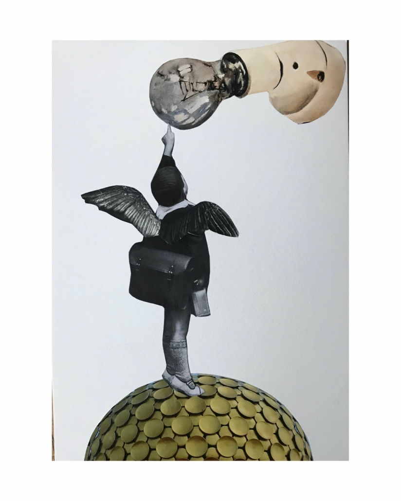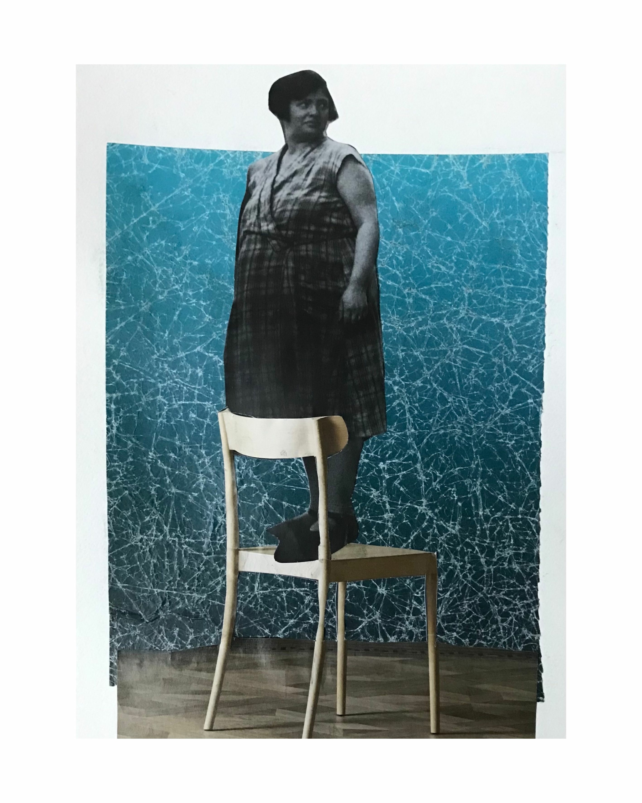 Le collage es un médium intuitif et portable qui me permet de poursuivre ma démarche en tant qu’artiste dans un espace de travail réduit.