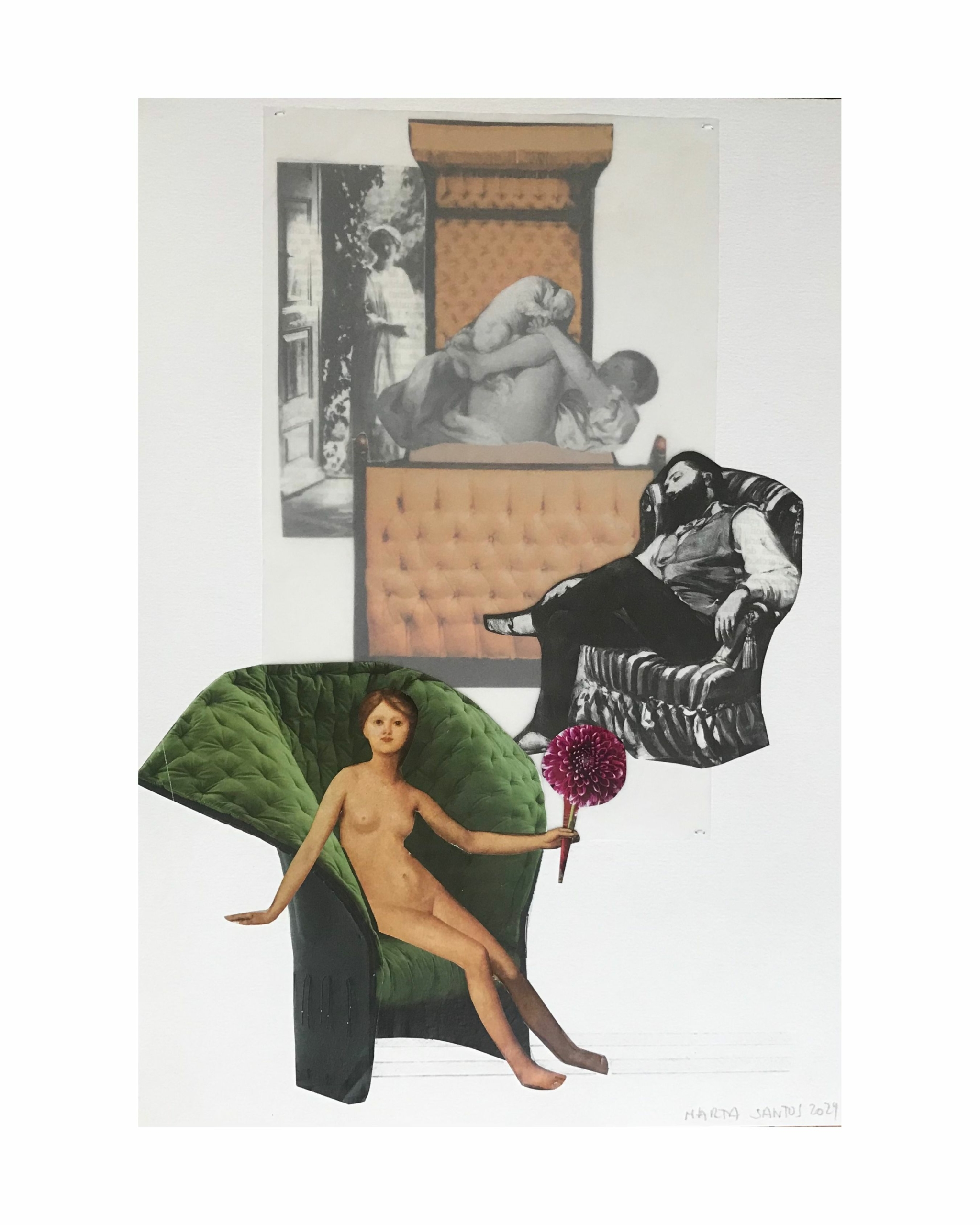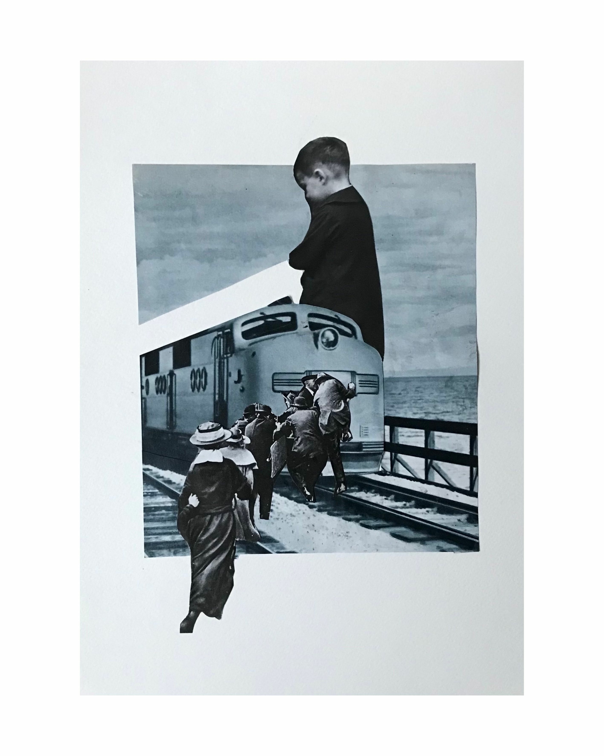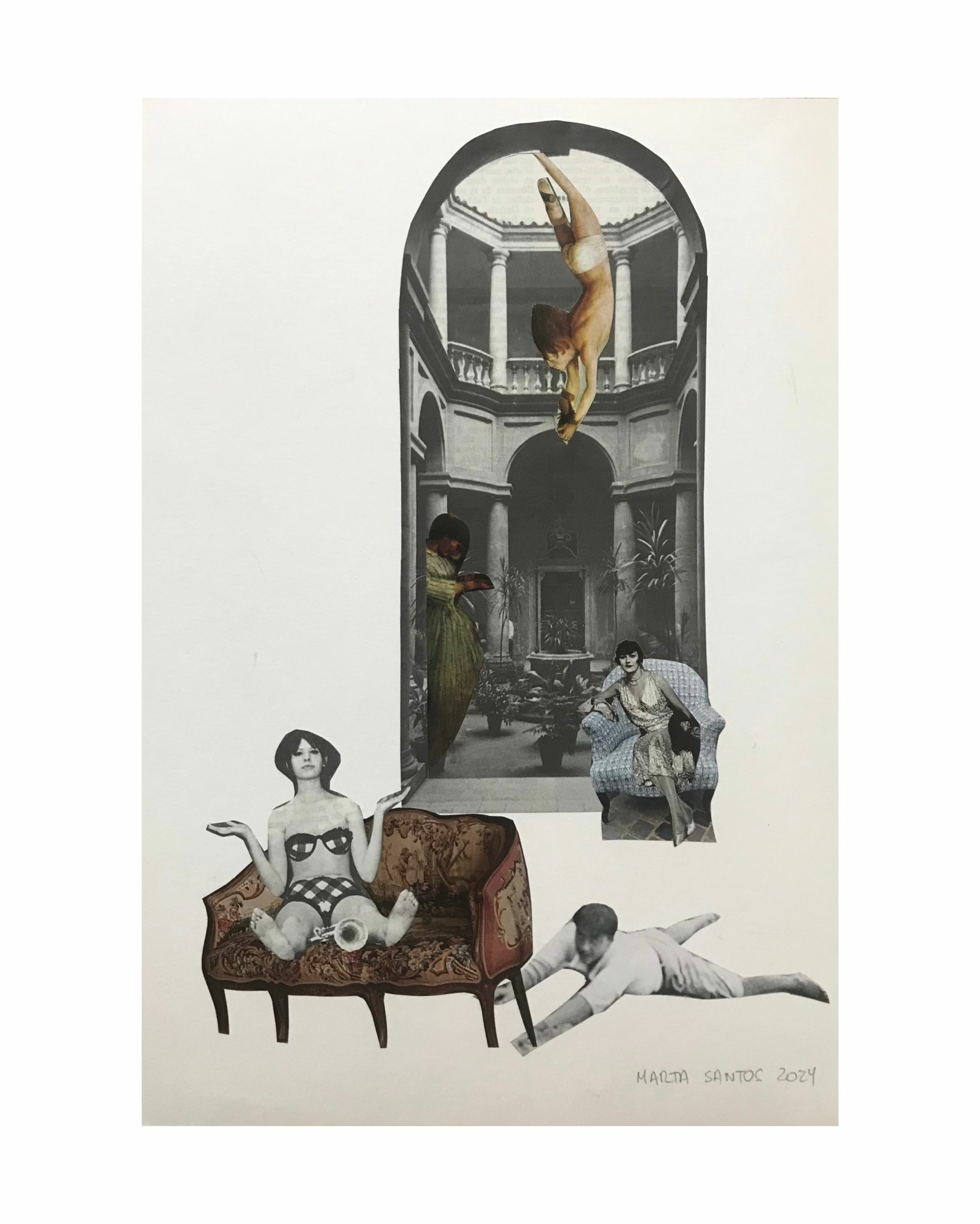 Le collage es un médium intuitif et portable qui me permet de poursuivre ma démarche en tant qu’artiste dans un espace de travail réduit.