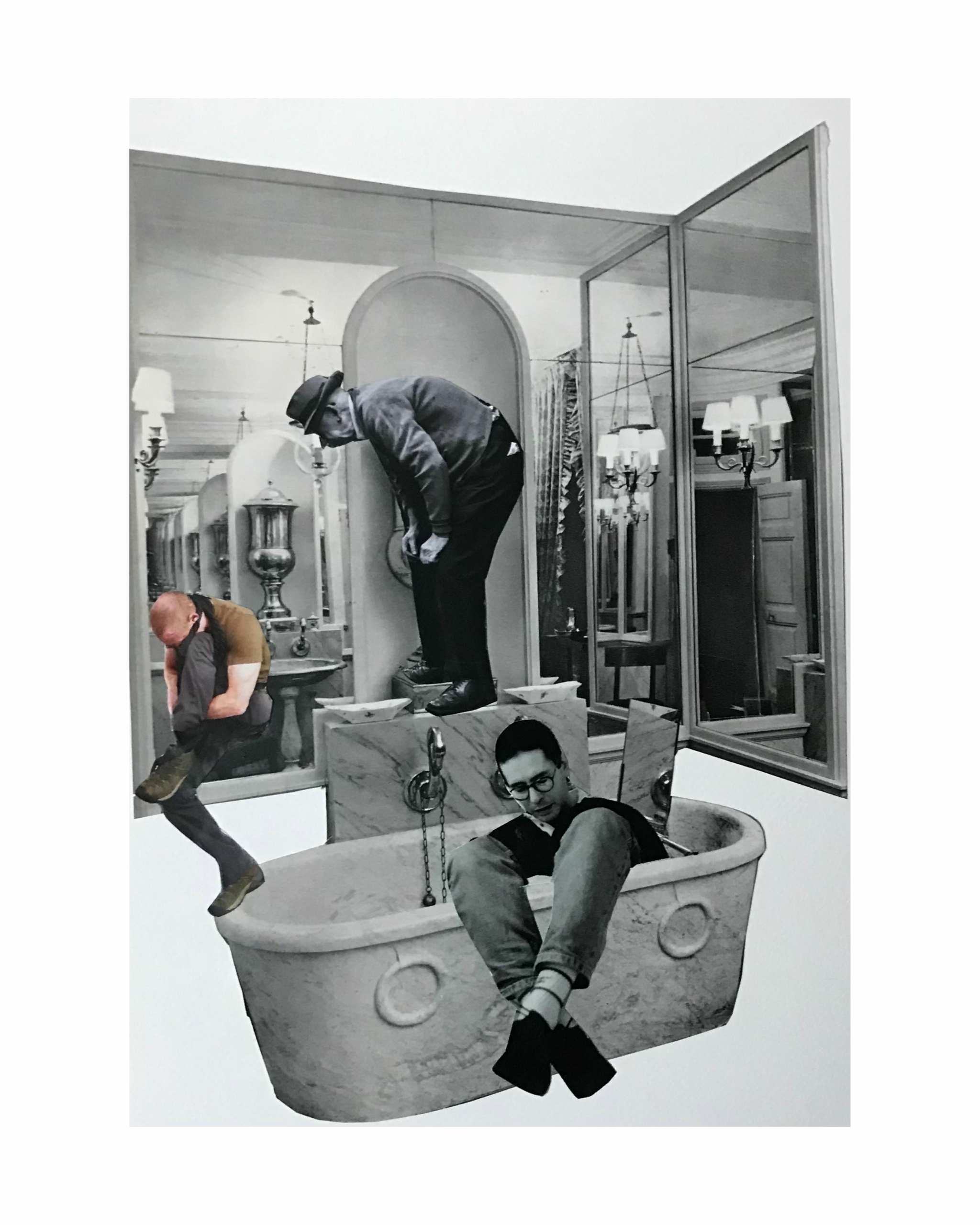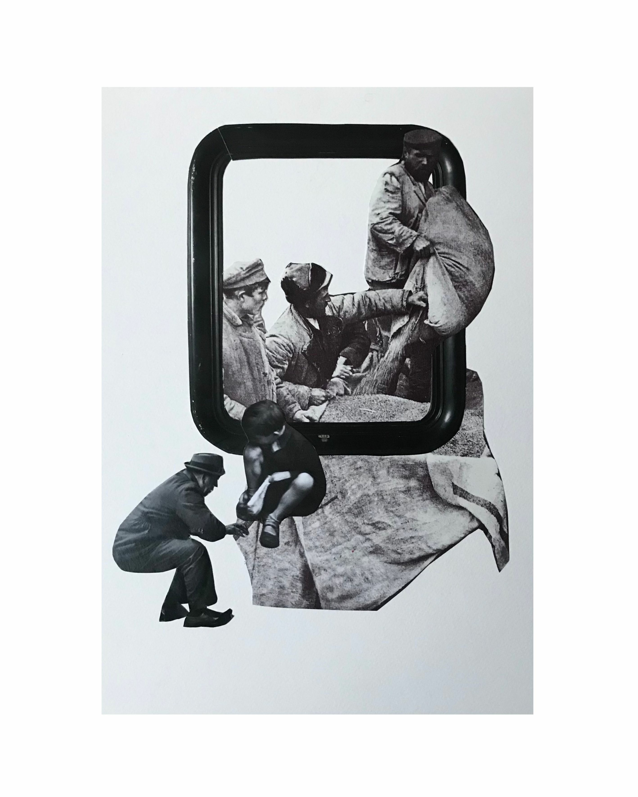 Le processus commence dans la récupération d’images a partir de différents support (magazines et encyclopédies anciennes) que j’extrais pour en suite les replacer dans une démarche intuitive d’association libre d’images. Pendant cette association je reste a l’affût de connections et échappatoires inattendus qui permettent d’entrevoir que les choses ne sont pas tout a fait ce qu’elles montrent.